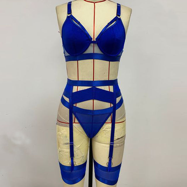 4 Pieces/Set (Bra, Dress with Garters , pants, 2pcs leg straps),