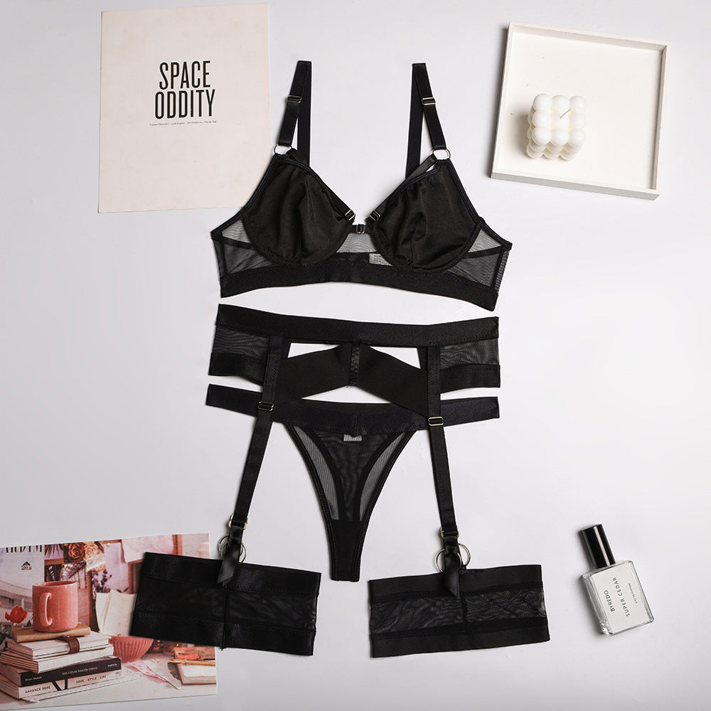 Sensual Lingerie Sexy Bra Women's Underwear Lace Bandage 4 Pieces Set Sexy Gather Bra with Garters See-Through Erotic Outfits