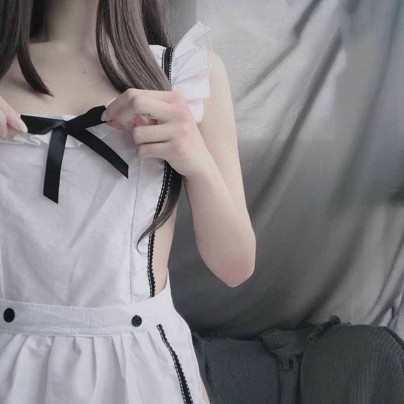 Seragam Lingrie Seksi Cosplay Pelayan Anime Gaun Pelayan Putih Pakaian Pelayan Bar Kopi Oufit Permainan Peran Pelayan Wanita Berongga