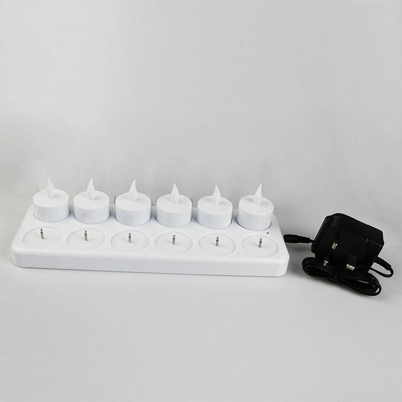 These rechargeable candles provides the warm glow of a static candle without the hazards of open flames and hot wax. The rechargeable tea light candles are wireless, and their long-lasting charges give up to 10 hours of static light, ensuring a cozy, warm, candle-lit space for entertainment, atmosphere, or decoration. The Candle Lights are wireless, so they can accent elegant meals at the dining room table, cocktails in the living room,or relaxing baths. Because they are cool to the touch, they are easy to use in places where it may not be practical to have real candles. When not in use, place the Candle Lights on their convenient charger base that doubles as a storage holder. Unlike regular candles, the Candle Lights will never burn out.