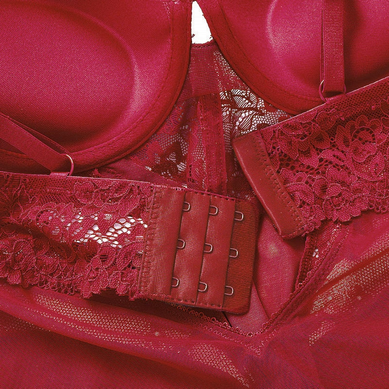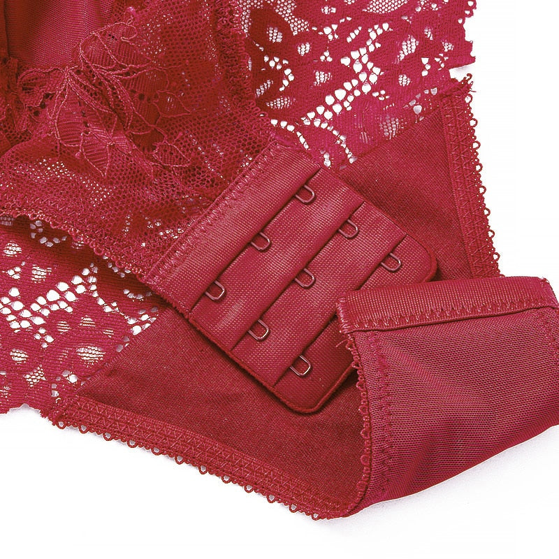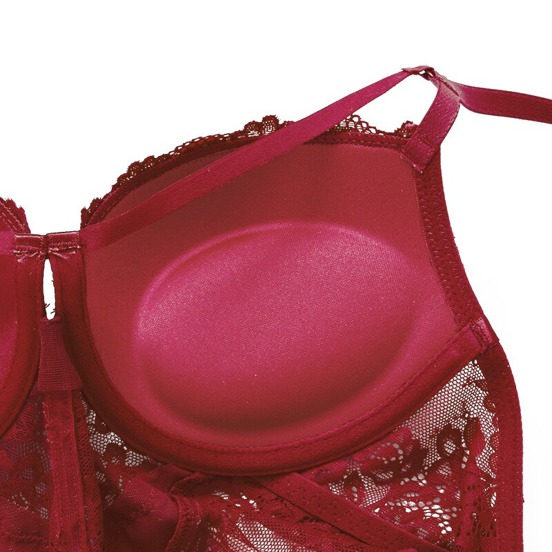 Sexy Body Women Push Up Strappy Cup Underwire Hollow Out Back Floral Pattern Bodysuit Women Lingerie Bra with Openable Crotch