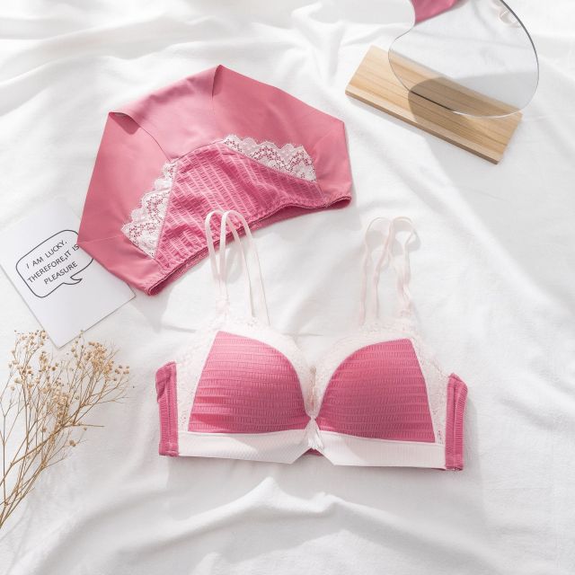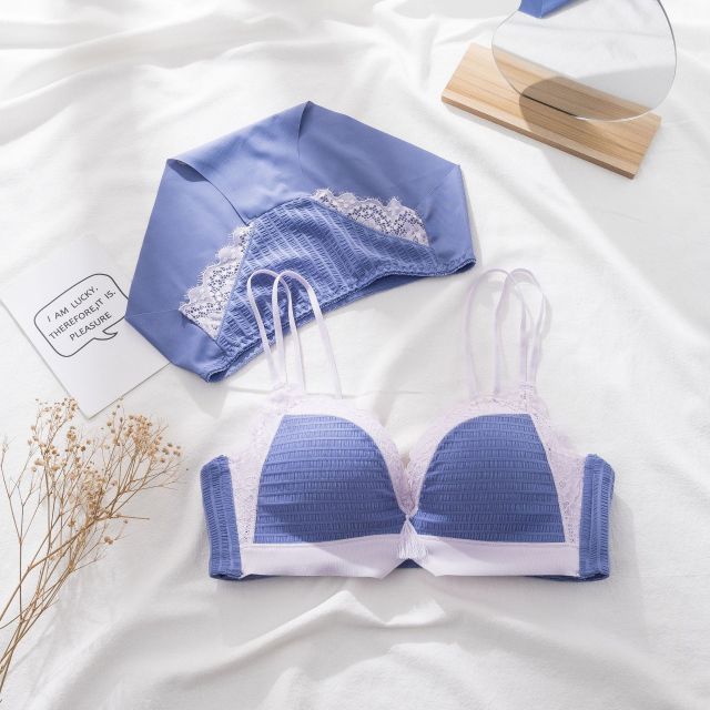 Sexy girl bra and briefs underwear pure desire wind small chest gathered thick cup comfortable cup no steel ring latex lingerie