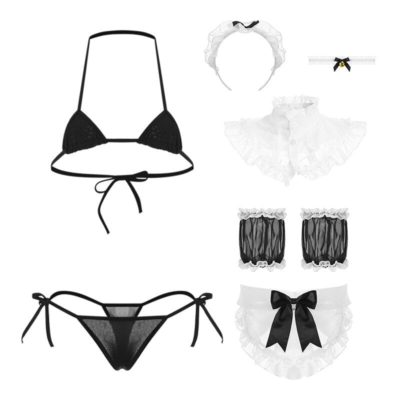 Sexy Lingerie Hollow Sexy Breastless Maid Role Play Uniform Temptation Slutty Lingerie Erotic Cosplay Maid Apron Lingerie Set