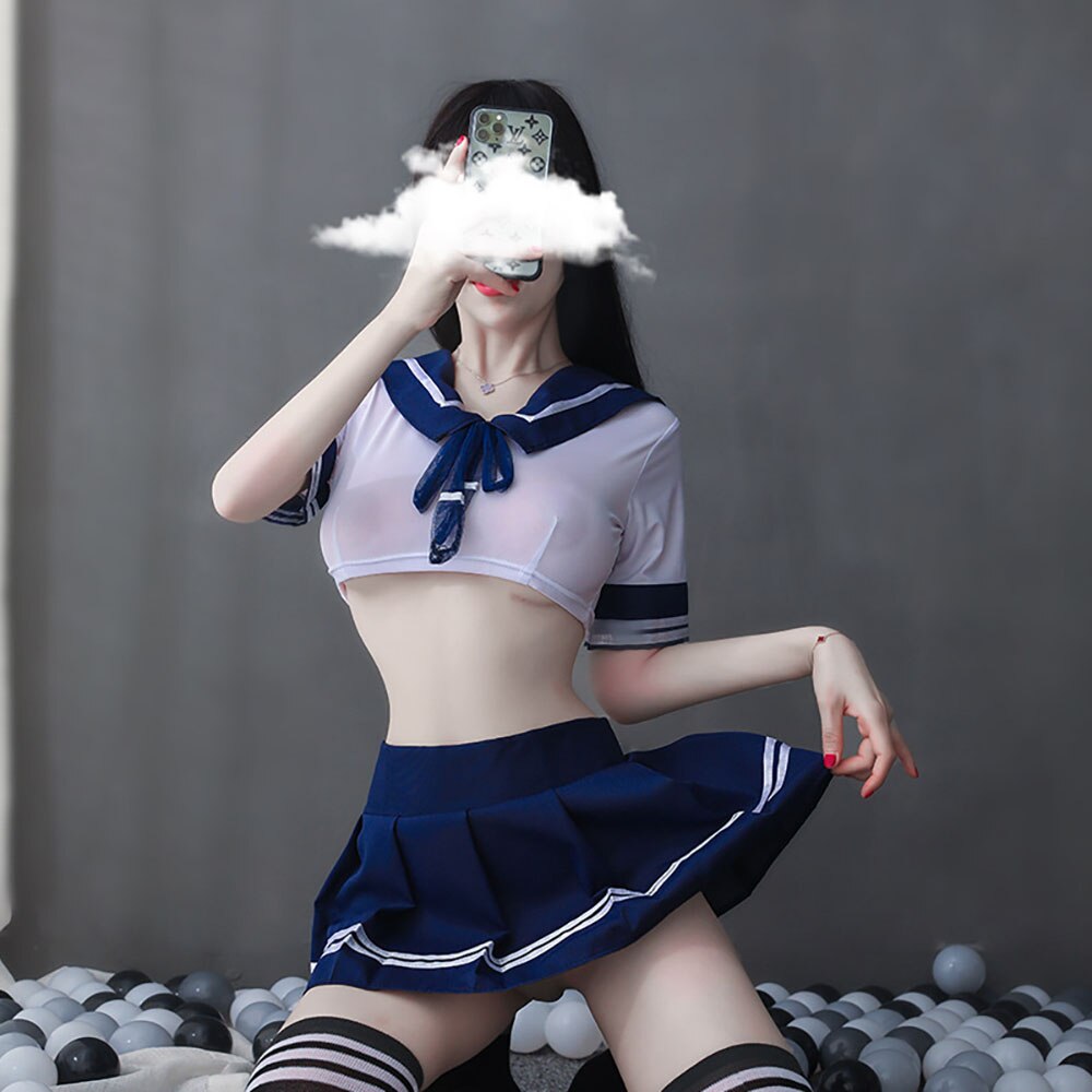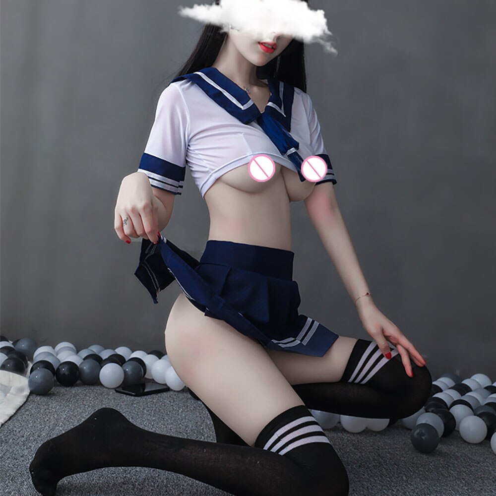 Sexy School Girl JK Costume Cosplay Women Erotic Babydoll Sailor Suit Japanese Student Uniform Miniskirt cheerleader Outfit