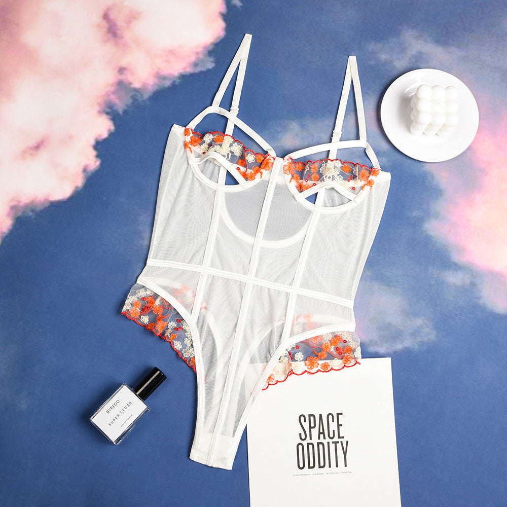 Sexy Sensual Lingerie Bodysuit Underwear Hollow Out Erotic Floral Embroidery Mesh Push Up Bra Bondage Underwear Erotic Costumes