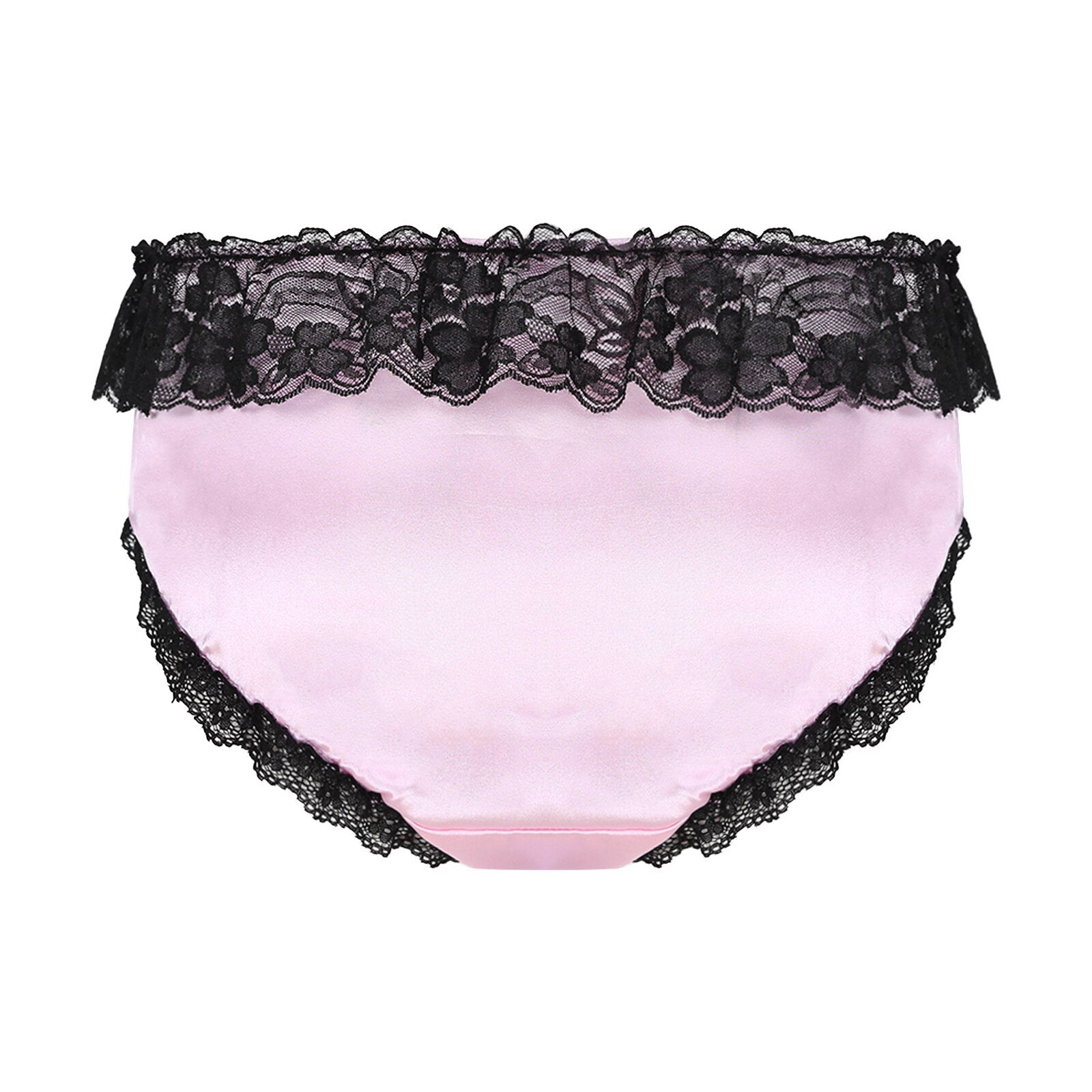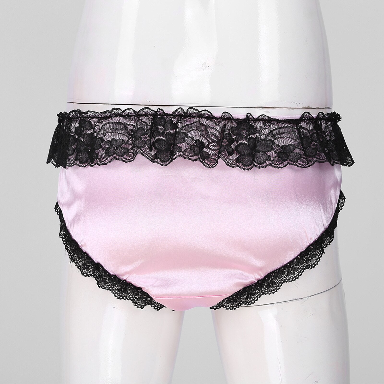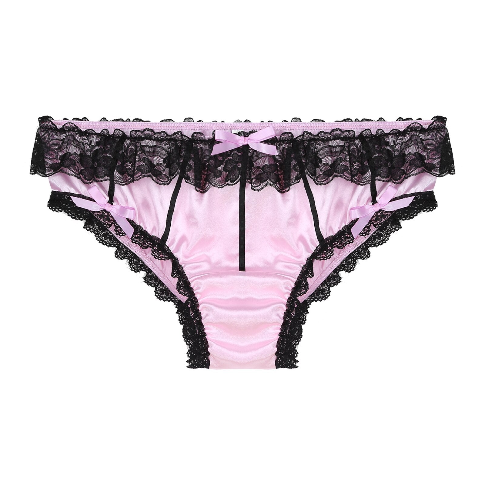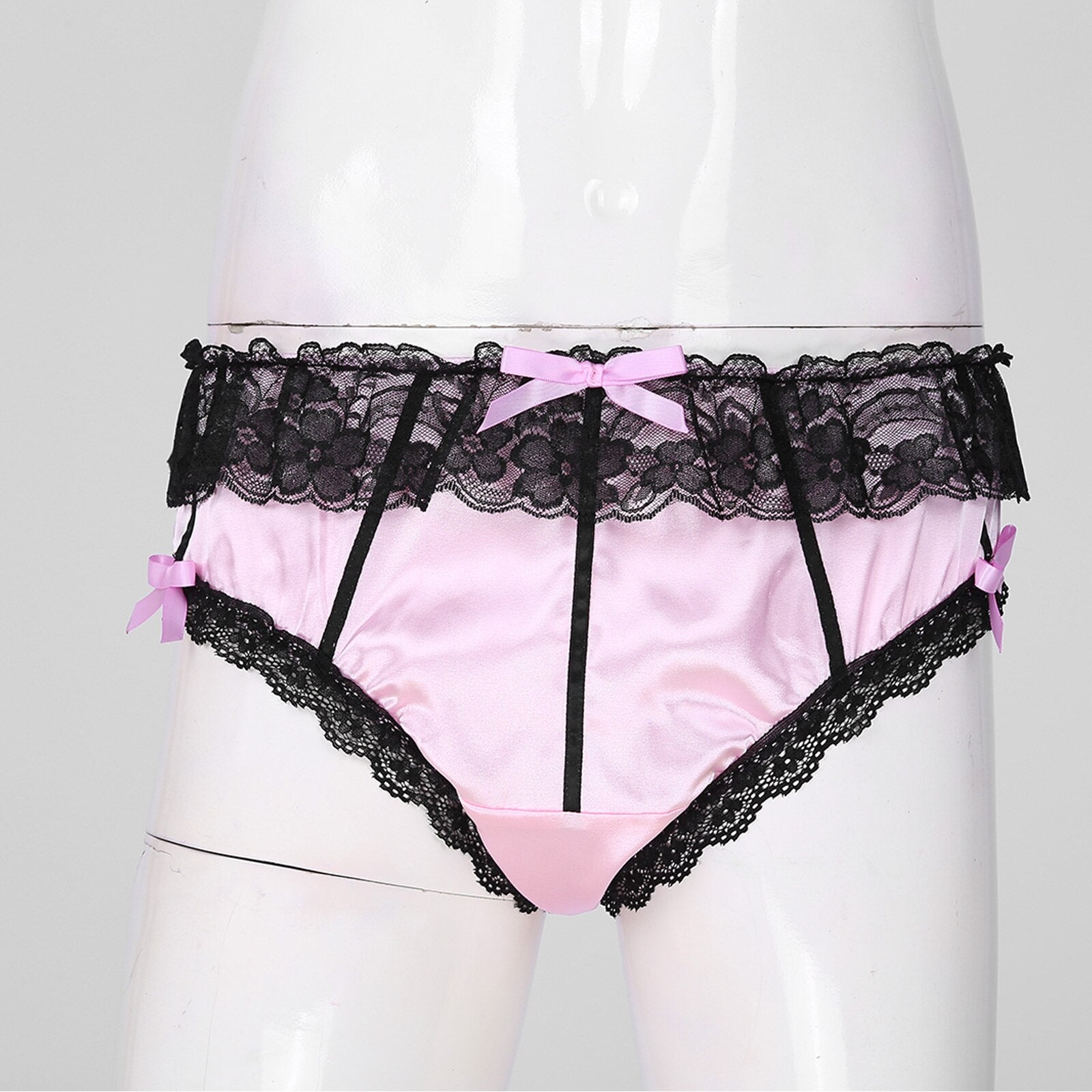 Mens Ruffle Lace Trim Low Waist Briefs Bowknot Satin Underpants Sissy Crossdress Underwear.