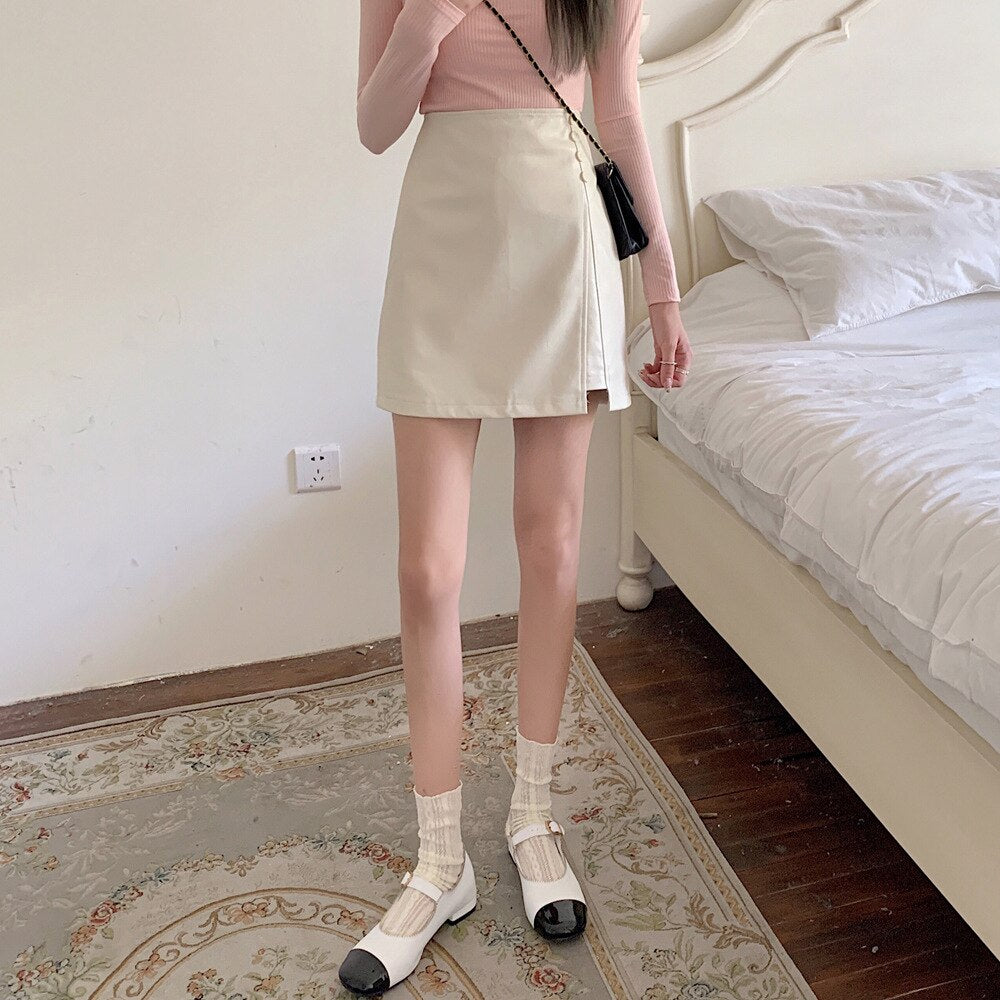 Slit Half-length Leather Skirt Women's Spring Autumn 2021 New High Waist Anti-glare A-line Package Hip Skirt Short Skirt