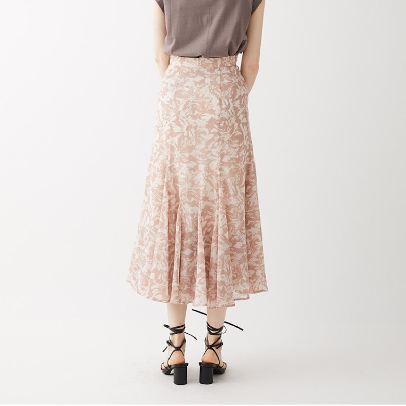 French Style A Line Print Woman Skirts Simple Fresh Sweet Office Lady All Match Skirt Mid-calf Slim Waist Faldas Mujer Moda