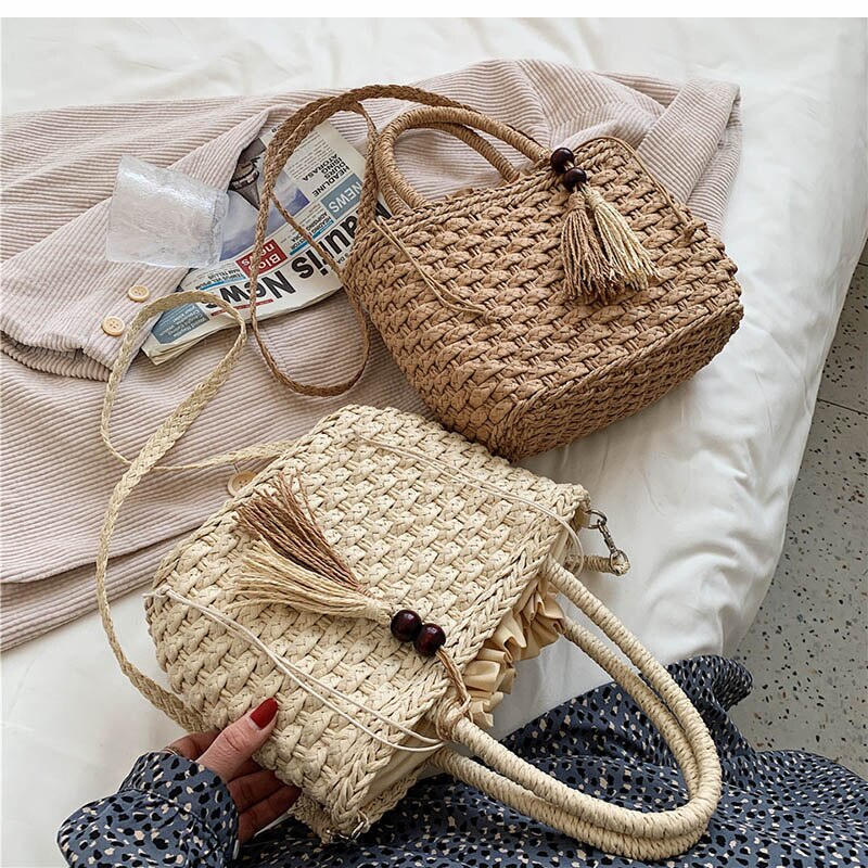 Tecido balde de palha sacos de ombro verão palha crossbody saco designer bolsa feminina viagem praia férias tricô tote