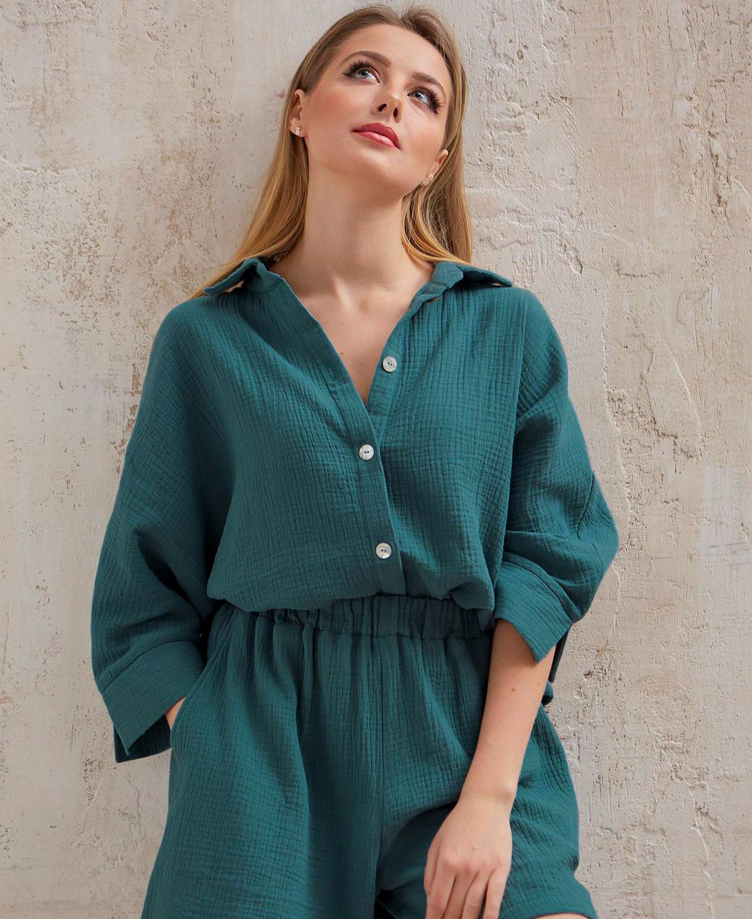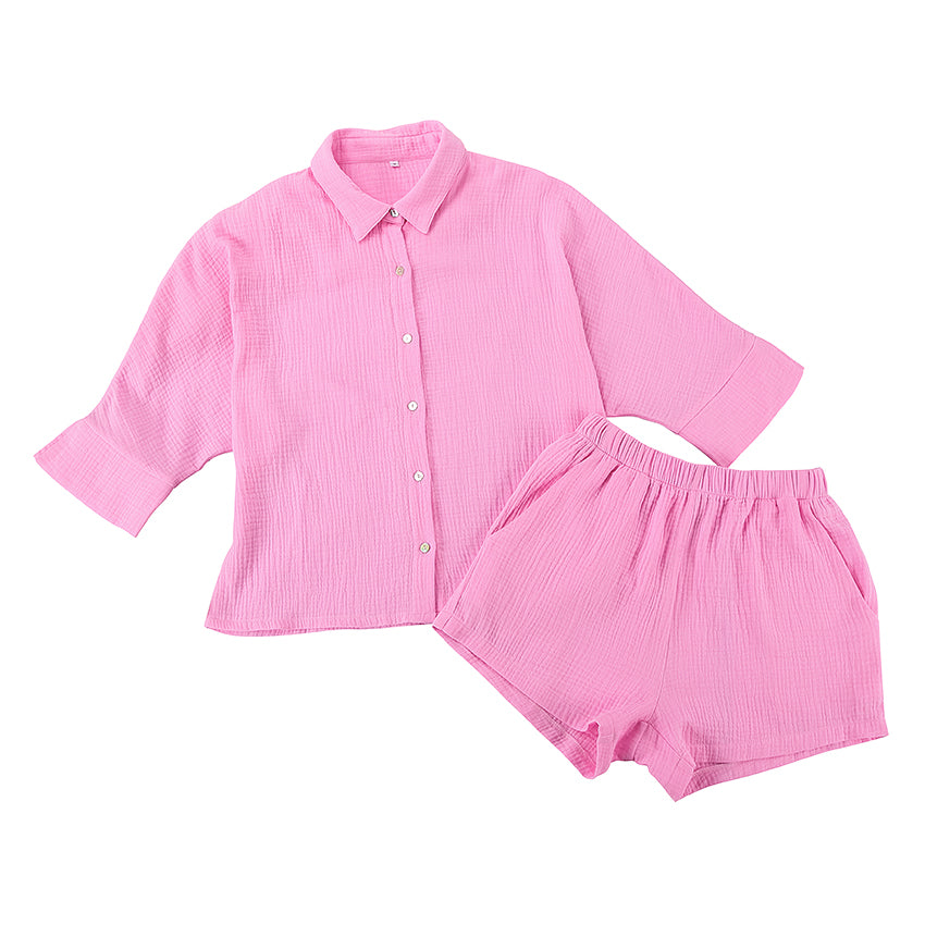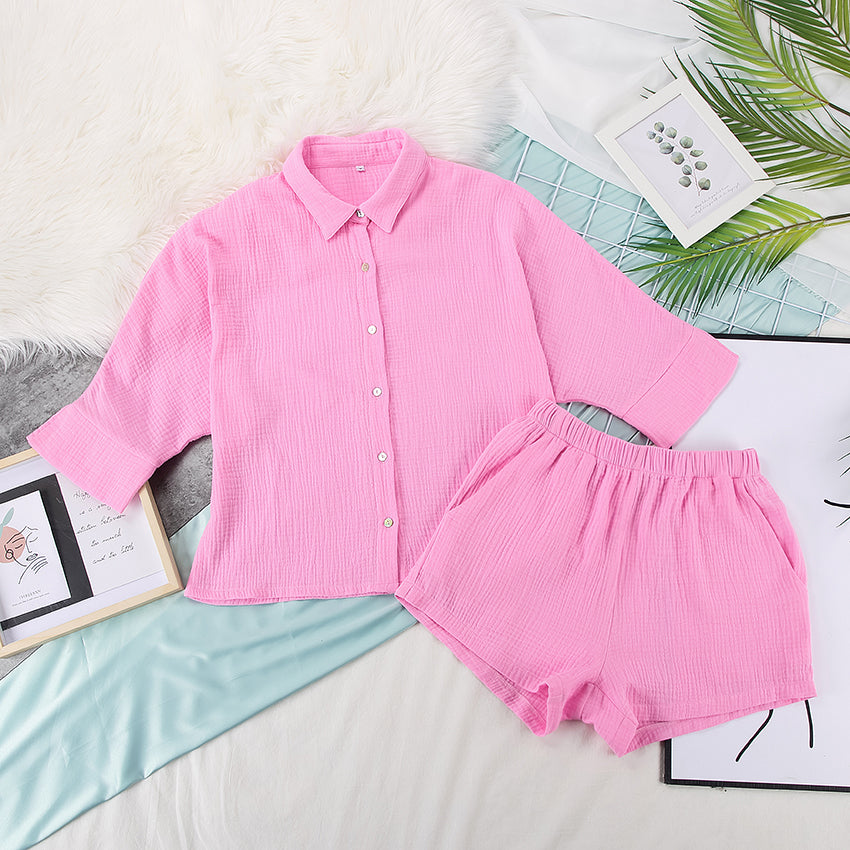 Suphis Turn-down Collar Nine Quarter Sleeve Sleep Tops Shorts Female Homewear Casual Sleepwear Cotton Pajamas For Women Sets Sui