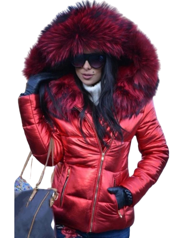 Wholesale Leather Jacket Ladies Short Zipper Cotton-padded Winter Luxury Fur Women Bubble Coat Real Racoon Fur Coat