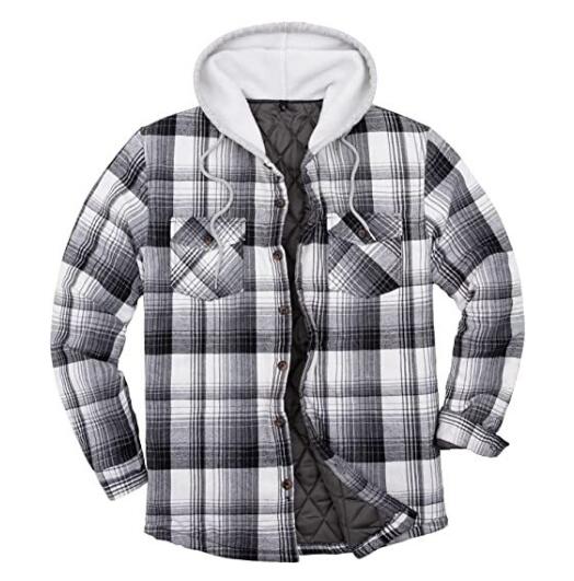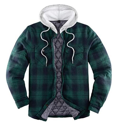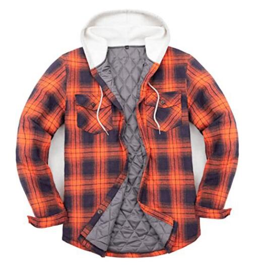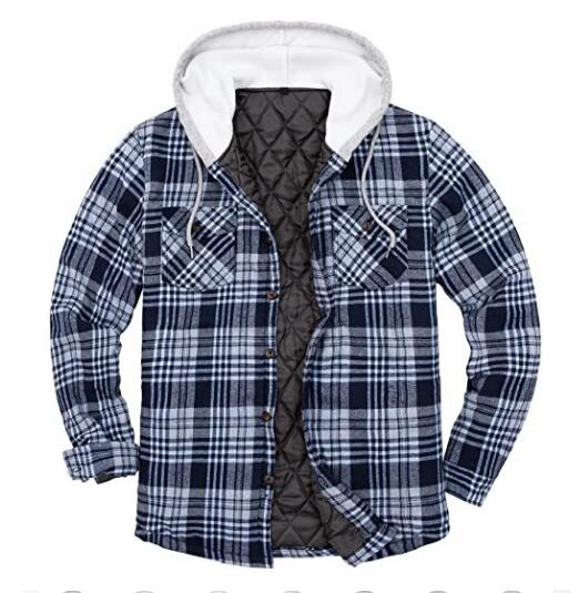 Wholesale Thick cotton plaid long sleeve loose hooded jacket buttons quilted padded plaid hooded flannel shirt jacket