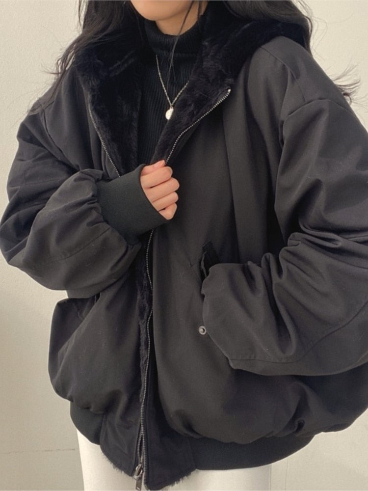 Winter 2022 New Cashmere Thickening Hooded Short Coat On Both Sides Lamb Wool Cotton Coat Cotton Women's Wear Chaquetas Y2k Trf