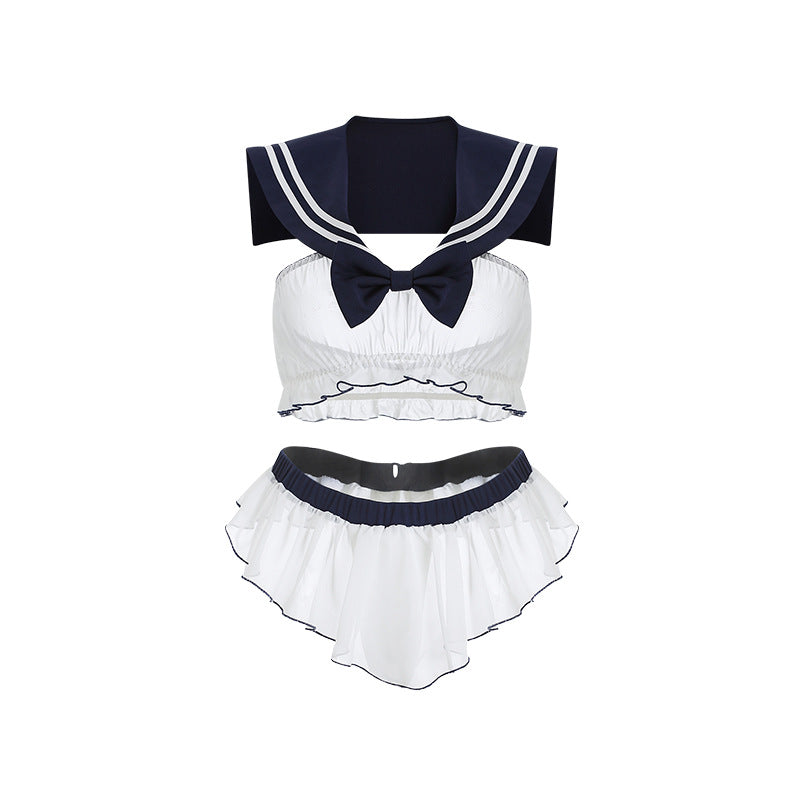 Woman Sexy Lingerie Set Erotic Chiffon Perspective Cosplay Student Sailor Suit Open Crotch Uniform Exotic Lolita Bikini Babydoll
