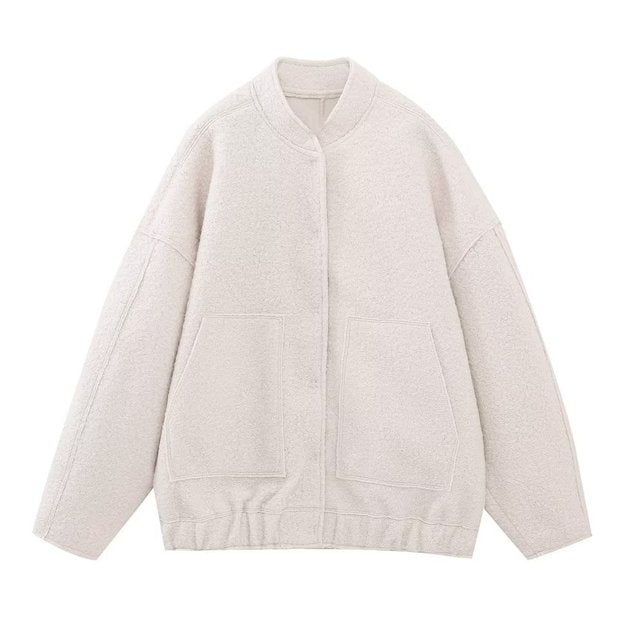 Women's Casual Loose Bomber Jacket 2023 NEW Spring Warm Women's fashion coat With Pockets Fashion Plush Solid Female Outwear