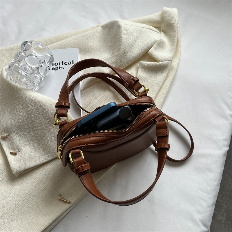 Women's fashion small handbag casual shoulder bag mini messenger bag mobile bag purse zipper leather women's bag