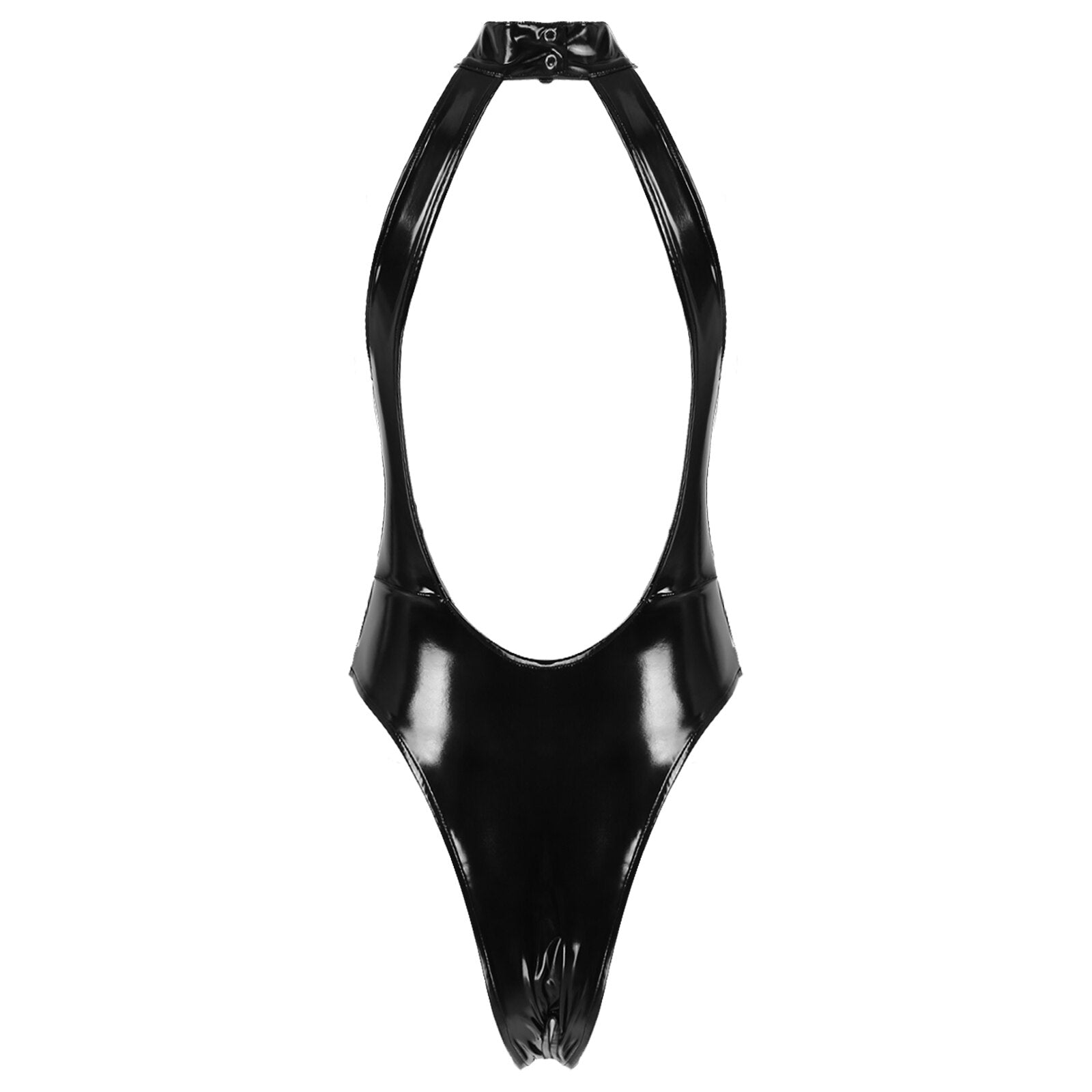 Wet look patent leather bodysuit, shows your charming curves and makes you attractive.