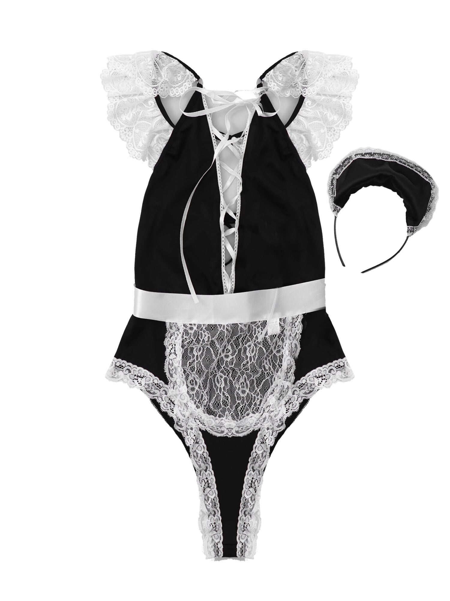 Set Include: 1Pc Women Lingerie, 1Pc Apron, 1Pc Hair Hoop