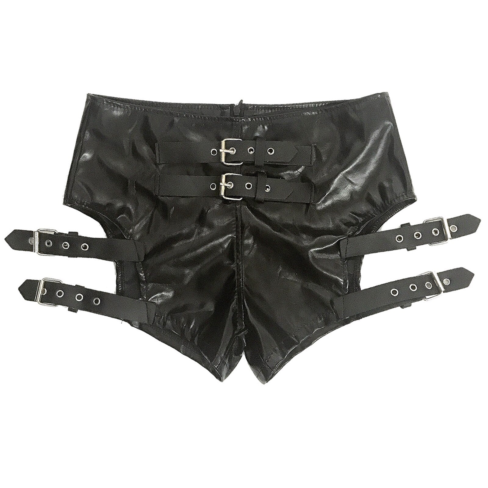 Women Fashion Patent Leather Strappy Booty Shorts Hot Pants Clubwear.