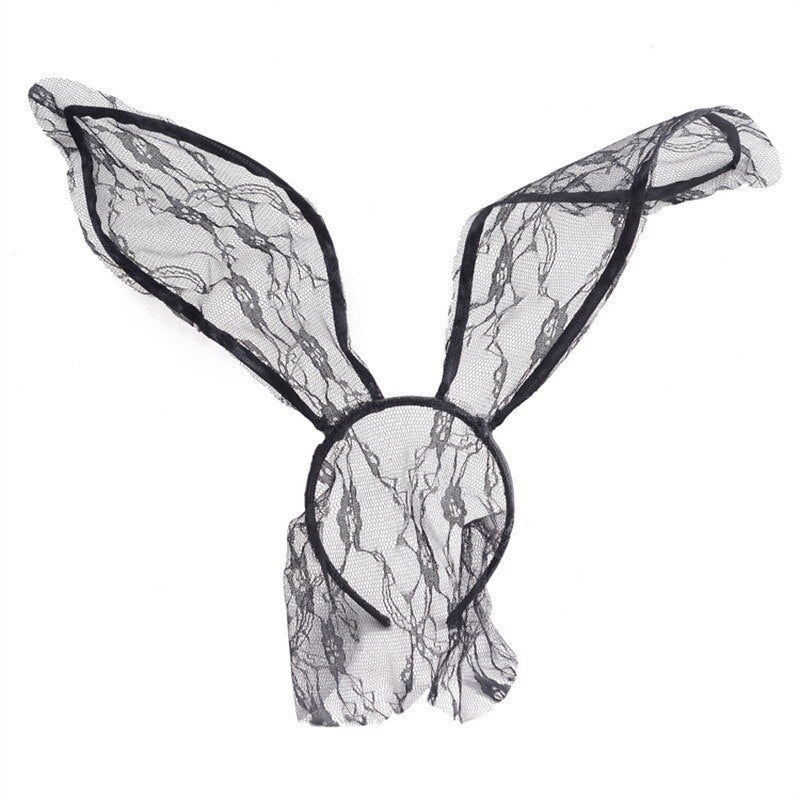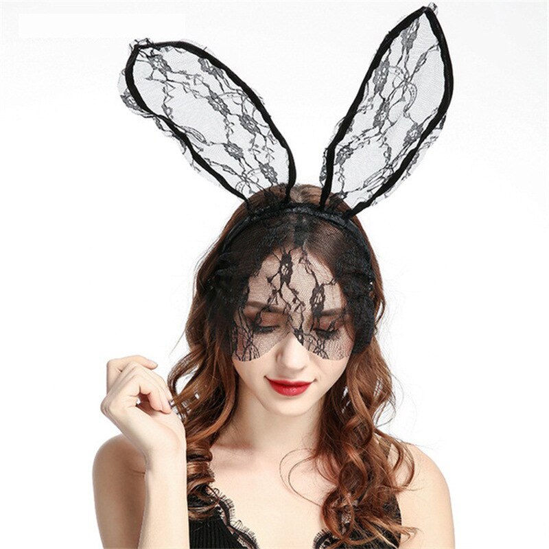 Women Rabbit Ears Sexy Lace Model Hair Band Bunny Veil Fashion Black Hair Accessories Halloween Party Mask Sex Tools