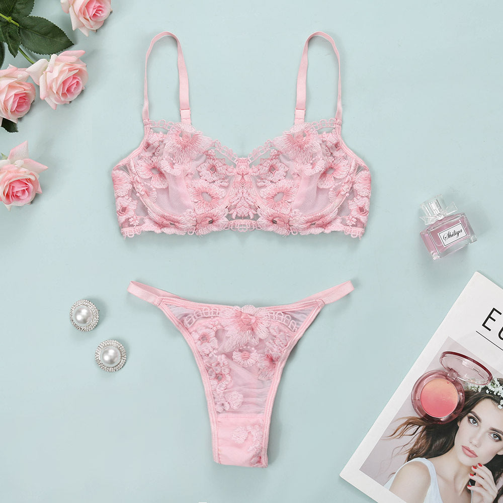Women Sexy Floral Embroidery Lace Underwear Set Underwire Bra and Briefs Set Sensual Lingerie Exotic Night Underwear Suit