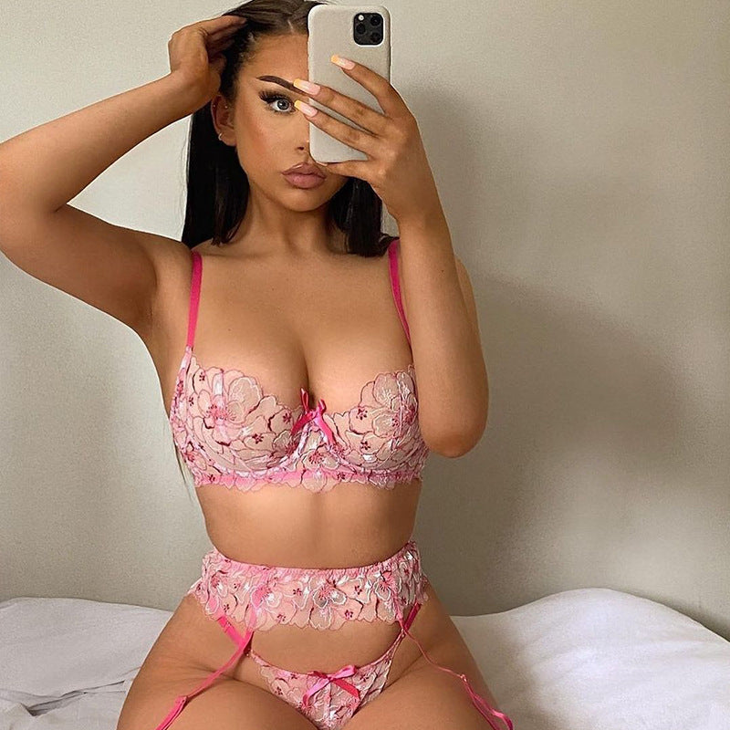Women Sexy Floral Embroidery Underwear 3 Pieces Set Erotic Bra and Brief Set Garter Thigh Belt Sensual Lingerie Lace Exotic Suit
