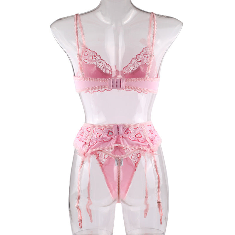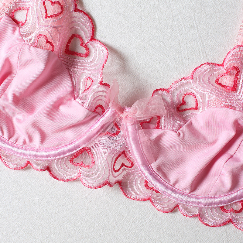 Women Sexy Heart-Shaped Embroidery Underwear See-Through Erotic Bow-Knot Bra and Briefs Set Sensual Lingerie 3 Pieces Set