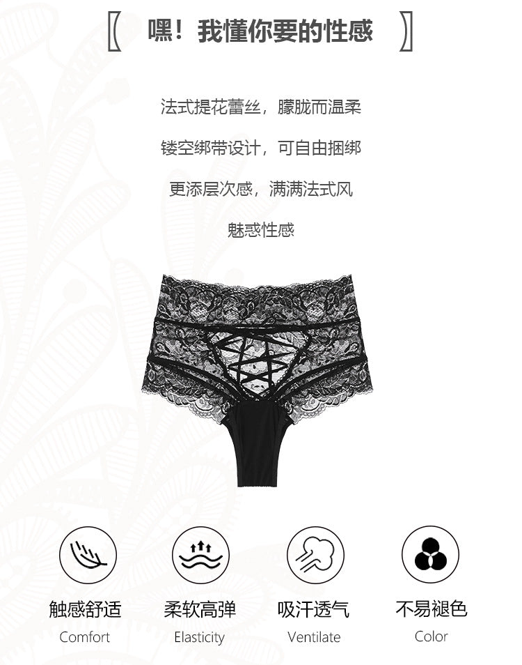 Women Sexy Lingerie Cross Strap Briefs High Waist Lace Perspective Underwear Female Seduction Abdomen Slim See Through Panties