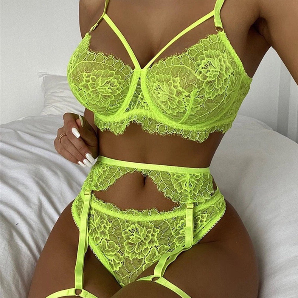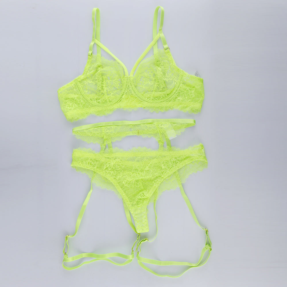 Women Sexy Lingerie Underwear Set Lace Push Up Gather Bra Sex Panties Transparent Erotic Sensual Lingerie Fluorescence Underwear