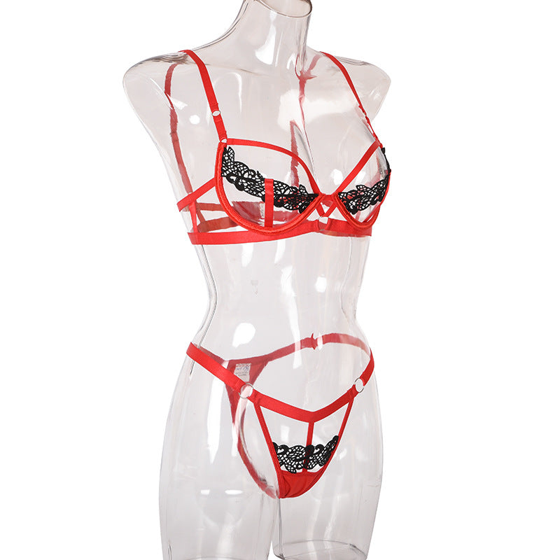 Women Sexy Patchwork Underwear Hollow Out Erotic Costumes Bra and Thong Sensual Lingerie Lace Exotic 2 Pieces Night Underwear