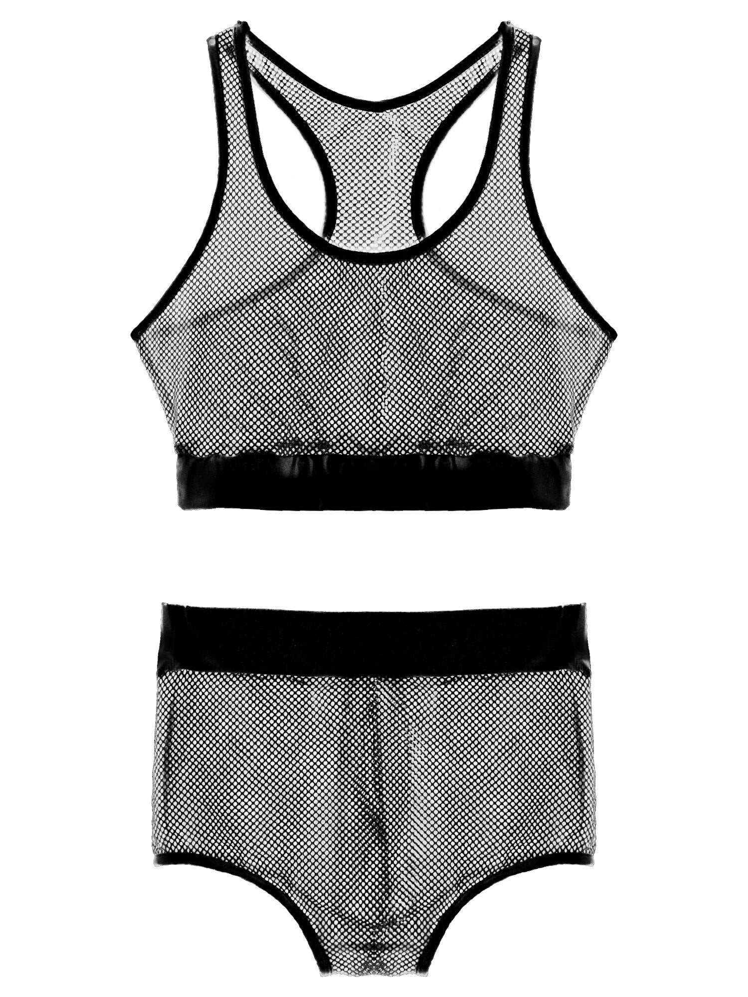Women Fashion Two-piece See-through Mesh Lingerie Set Cropped Tank Top with Hot Pants.