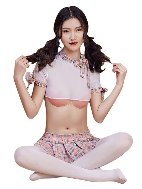 Women Plaid Uniform Outfit Schoolgirl Costume Lingerie Set for Halloween Cosplay.