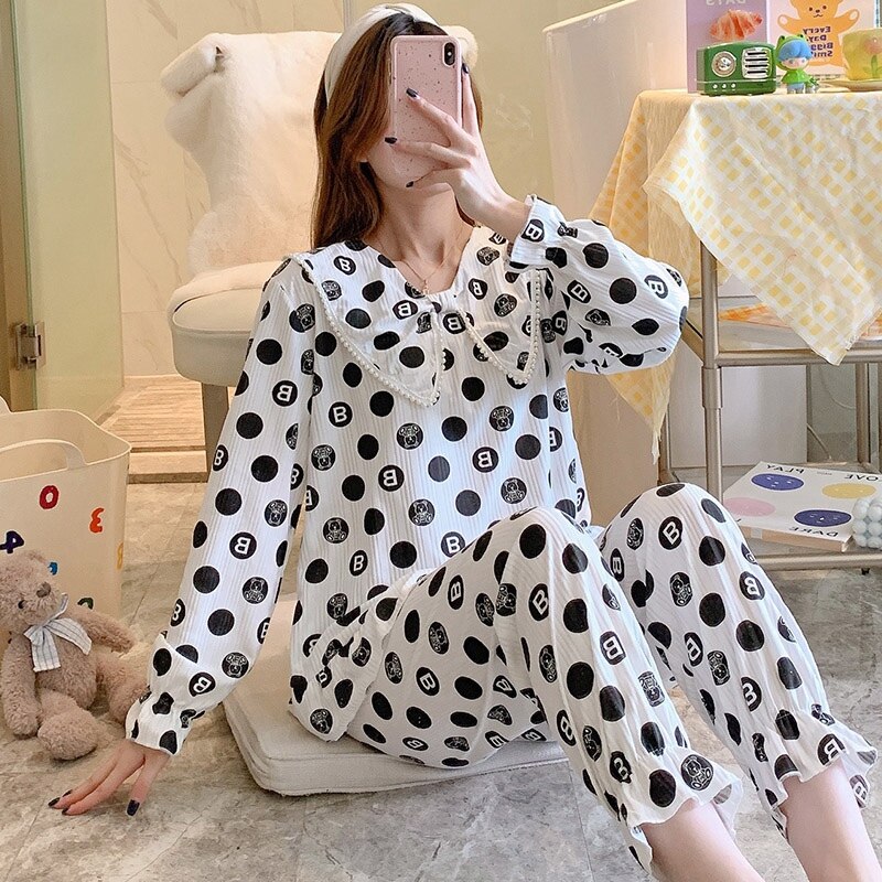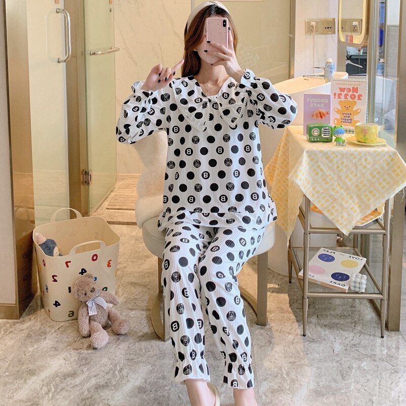 2022 Spring Autumn Long Sleeve Polka Dot Print Pajama Set for Women Sleepwear Cute Bow Suit Pyjama Homewear Pijama Mujer Clothes