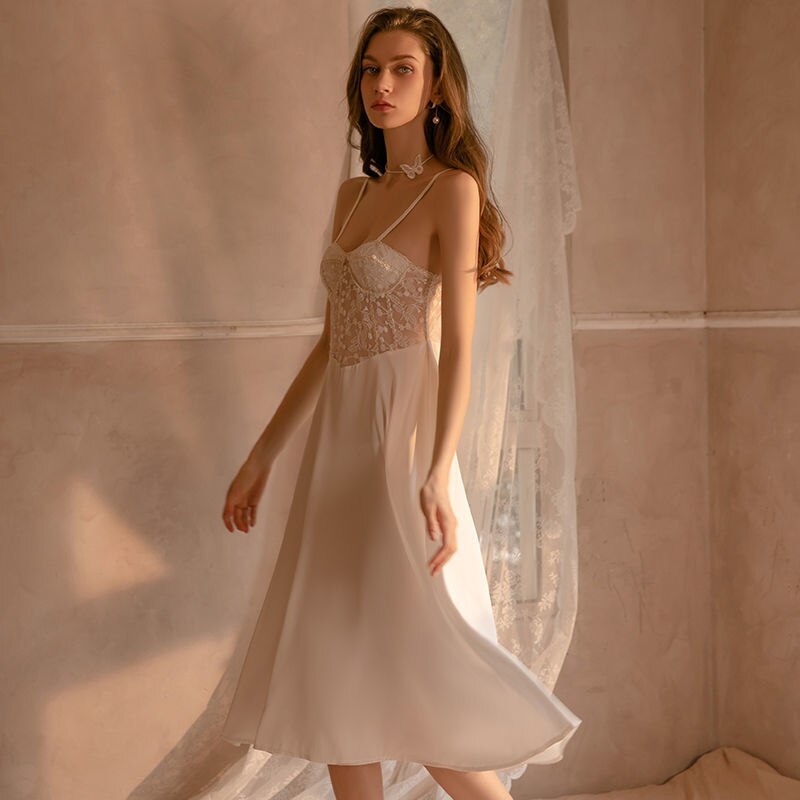 Black Women Pajamas Lace Hollow Long Dress Woman White Sling Satin Sexy Woman Nightie Sling Sleepwear Hollow Halter Sexy Dress