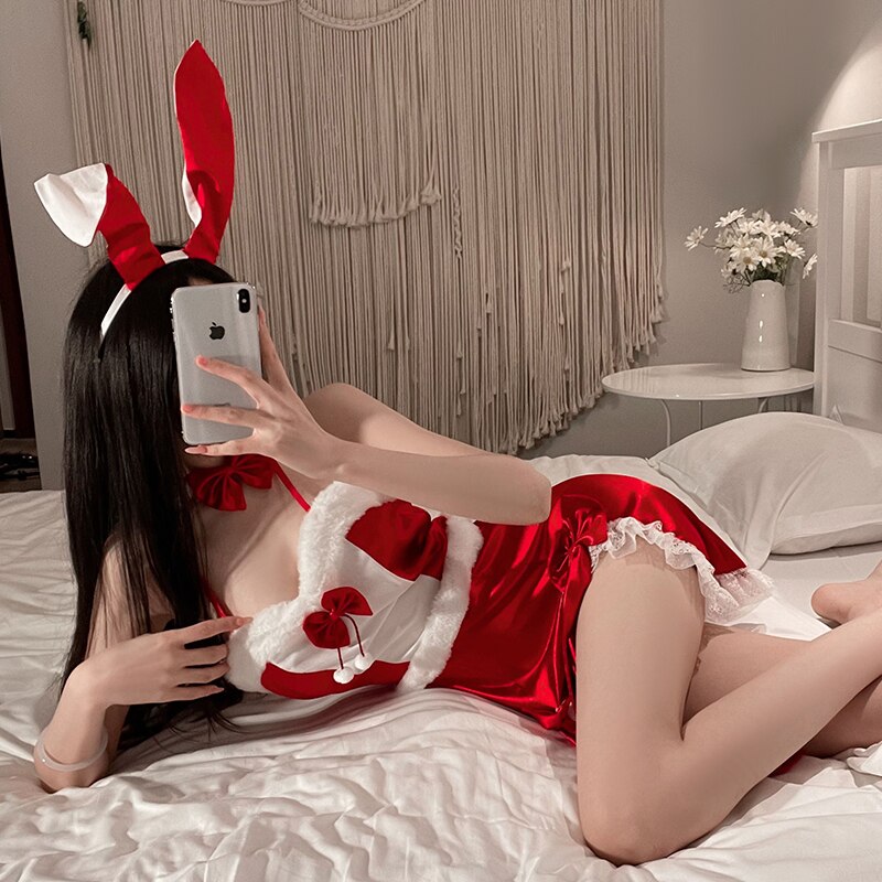Christmas Gift Pamajas Women Night Dress Bunny Girl Party Cosplay Lace Sleepwear 3Piece Velvet Nightgown Sexy Lingerie Camisole