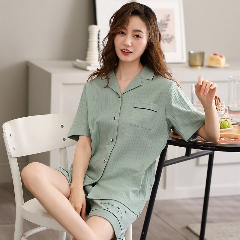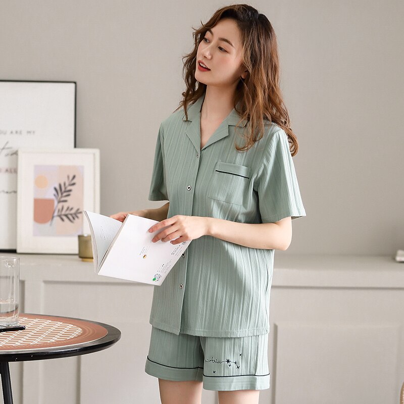 Cotton Pajama Set Female Pure Colour Pijamas Mujer Short Sleeve T-Shirt and Shorts Ladies' Pyjamas Summer Sleepwear Home Clothes