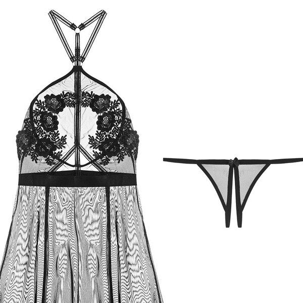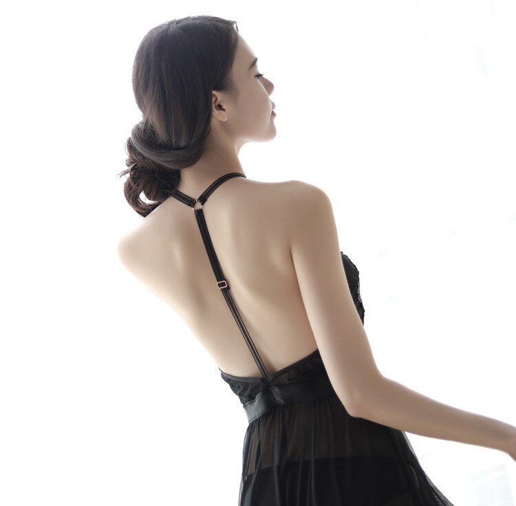 Satin nightgown Deep V Sexy Lace Nightgown Sleeping Dress Night