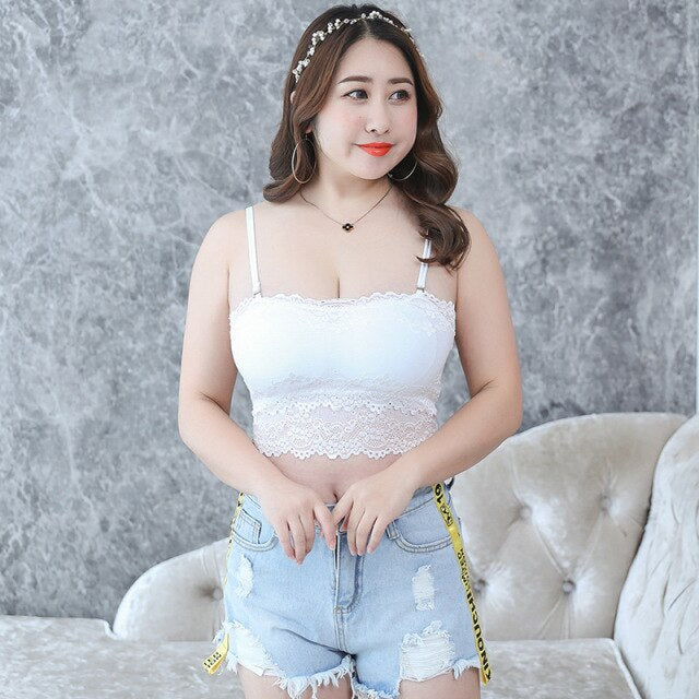 Femme Camis Women Sexy Tanks Lace Bra Tops Sexy Crop Tops Clothes Women Sleepwear Tanks Black White XL~XXXL Streetwear
