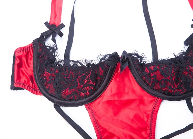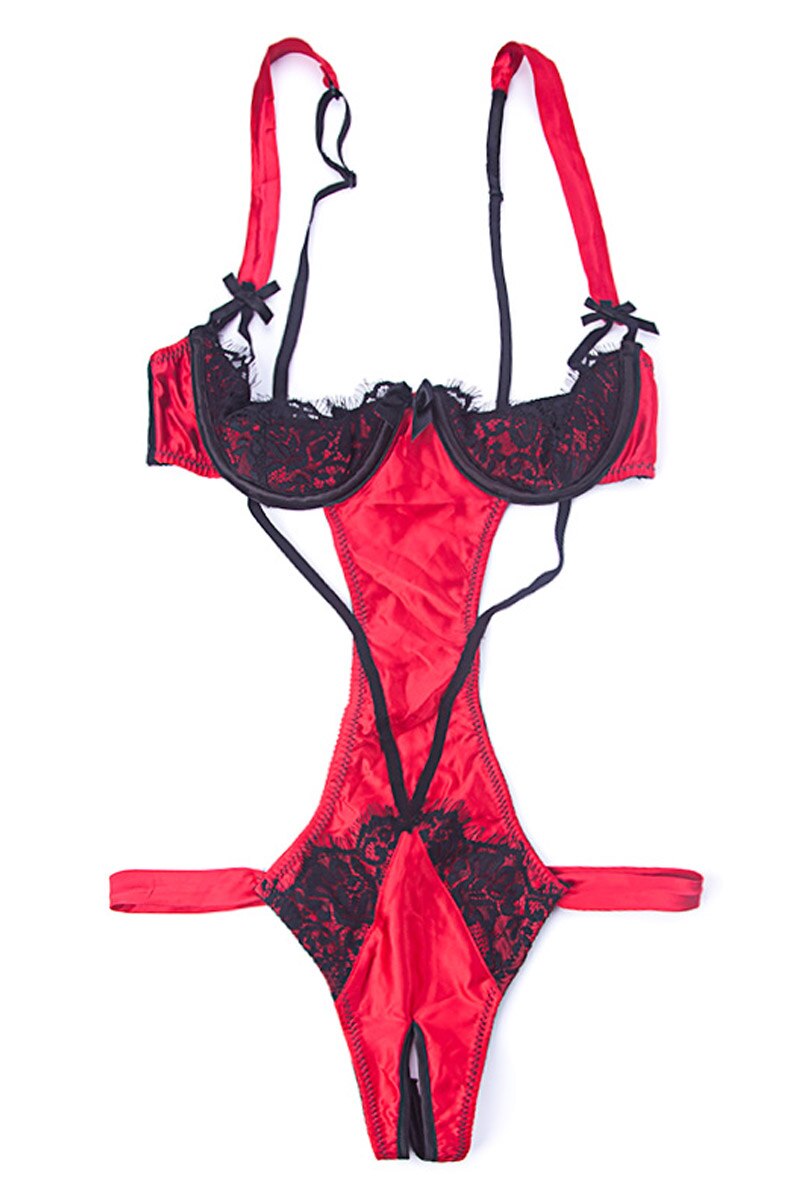 Hot Red Women Open Bra Baby Doll Sexy Lingerie Erotic Nylon Bodysuit Underwear Crotchless Teddies Nightwear Sleepwear
