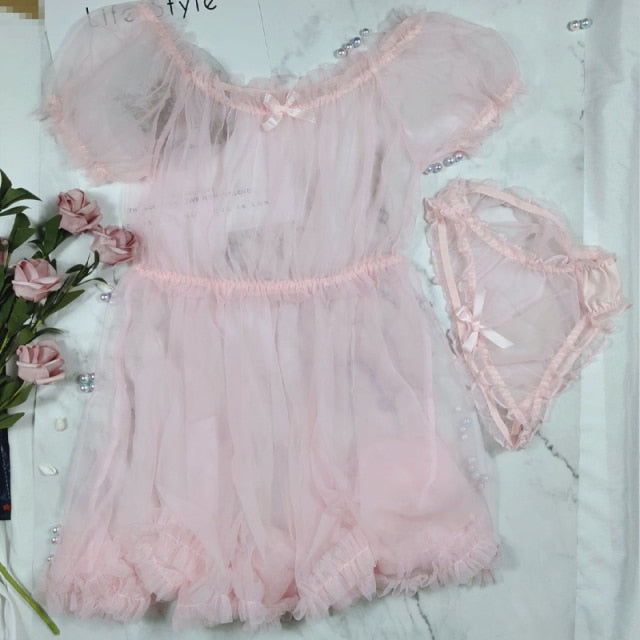 Hot Spring and Summer Home Clothes Lovely Night Dress Cute Women Sleepwear Sexy Lingerie Sling Hanging Neck Gauze Nightgown