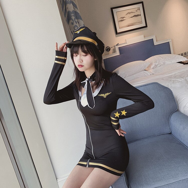 Japanese Stewardess Uniform Cosplay Costumes Women Party Night Club Dress Flight Attendant Uniform Sexy School Girl Costume