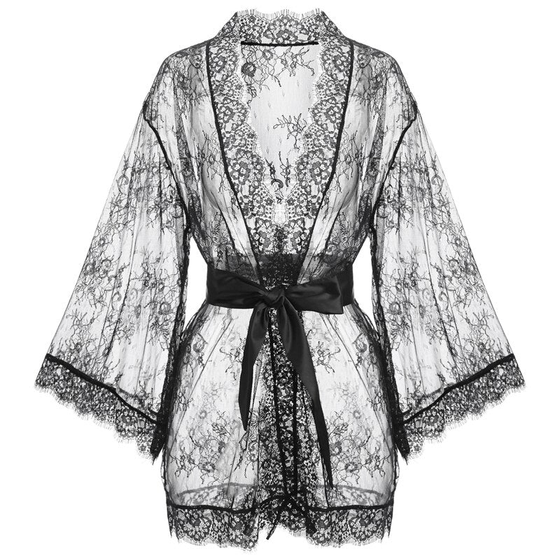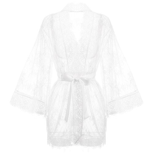 Japanese Wide-sleeved Eyelash Bathrobe Sleepwear Robe Women Kimono Dressing Gown Babydoll Nightwear Lace Nightgown Home Clothes