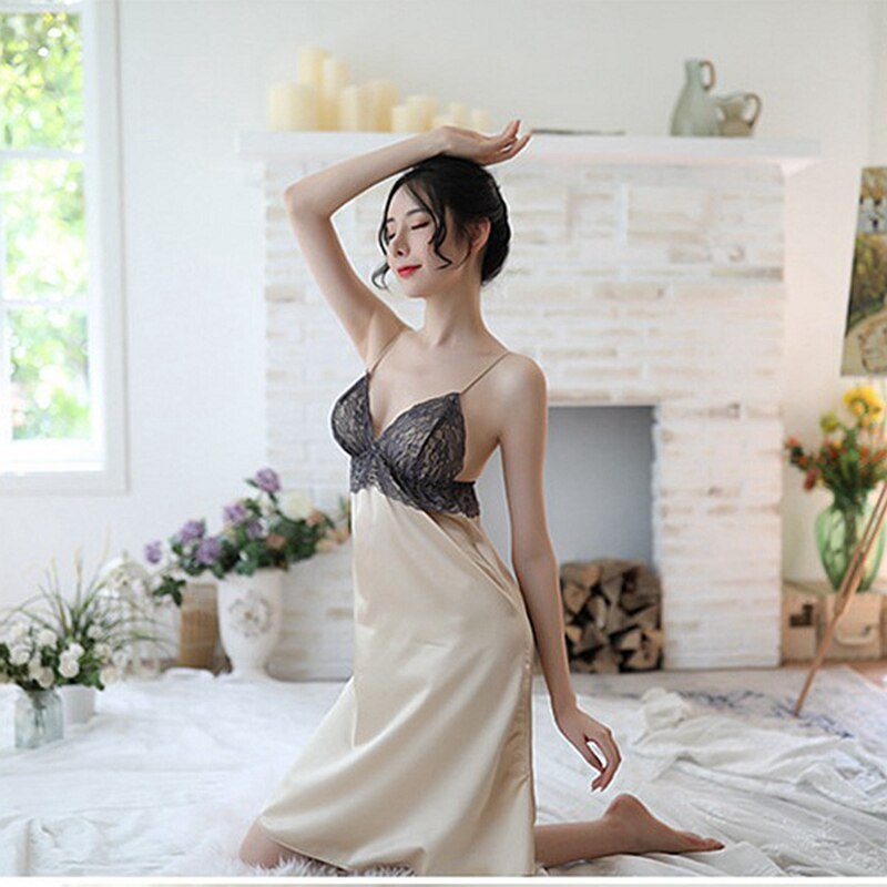 Women Nightgowns Sexy Lingerie Lace Patchwork Nighty