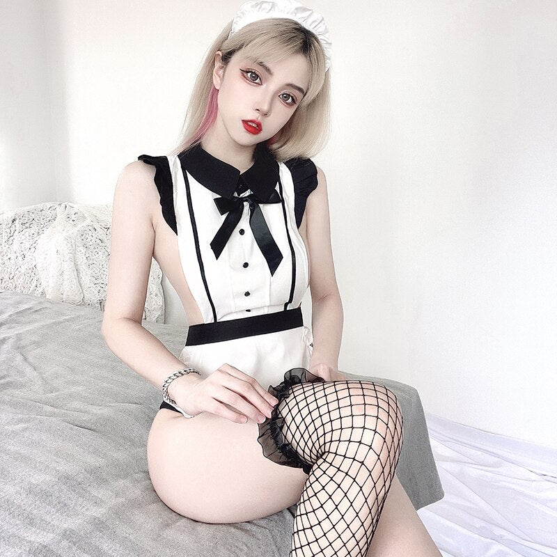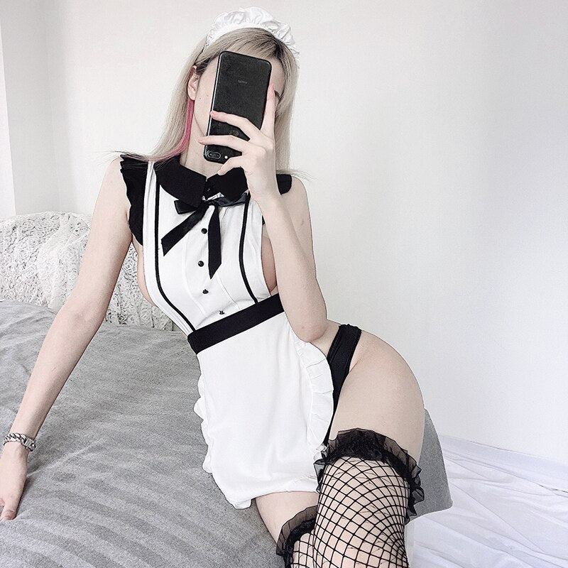 New Sexy Lingerie Halter Strap Apron Lace Maid Uniform Temptation Cosplay Anime Lovely Maid Nightdress Kawaii Sleepwear