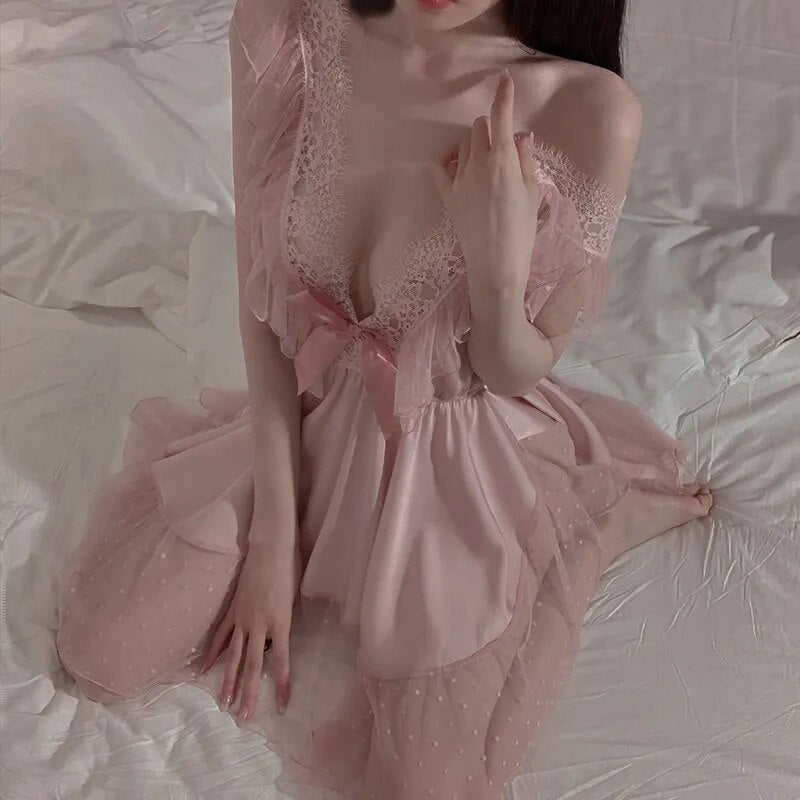 Night Dress Women Sexy Lingerie Pajamas Summer Thin Lace Suspenders Nightdress V-Neck Fashion Dress Pure Desire Wind Home Wear
