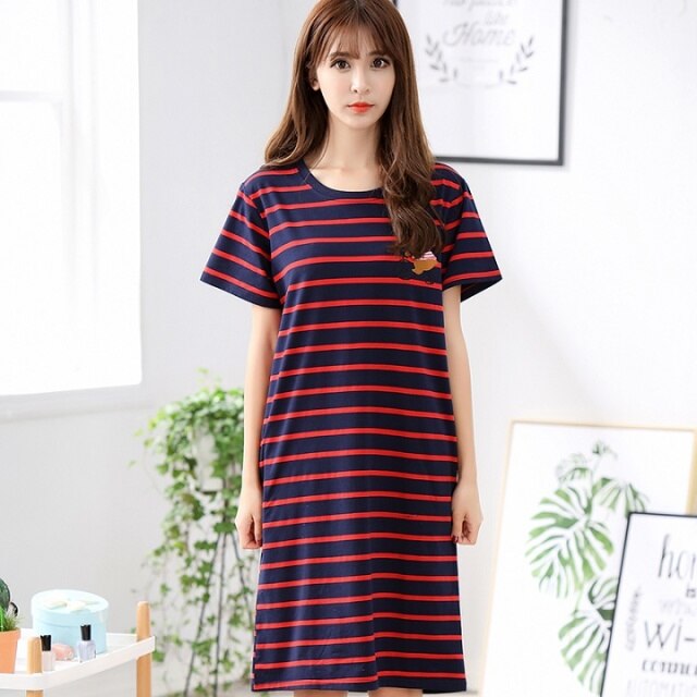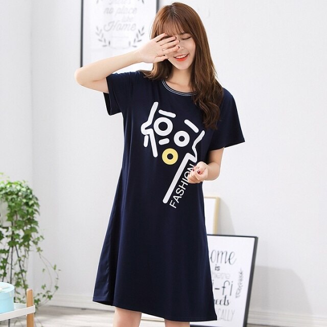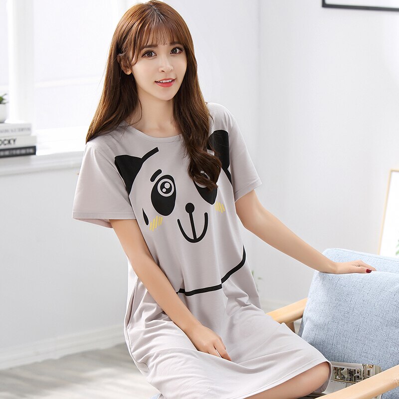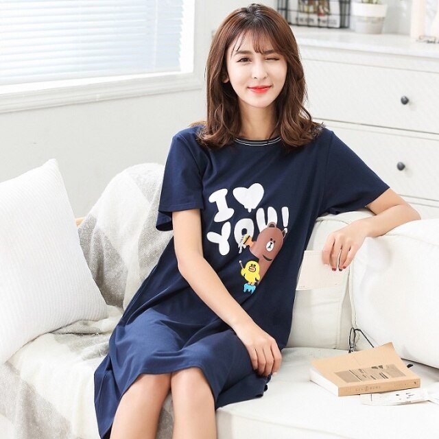 O-Neck Soft Women Sexy Nightgown Cotton Short Sleeve Cartoon Nightdress Sleepwear Summer Night Dress Female Home Clothing M-5XL