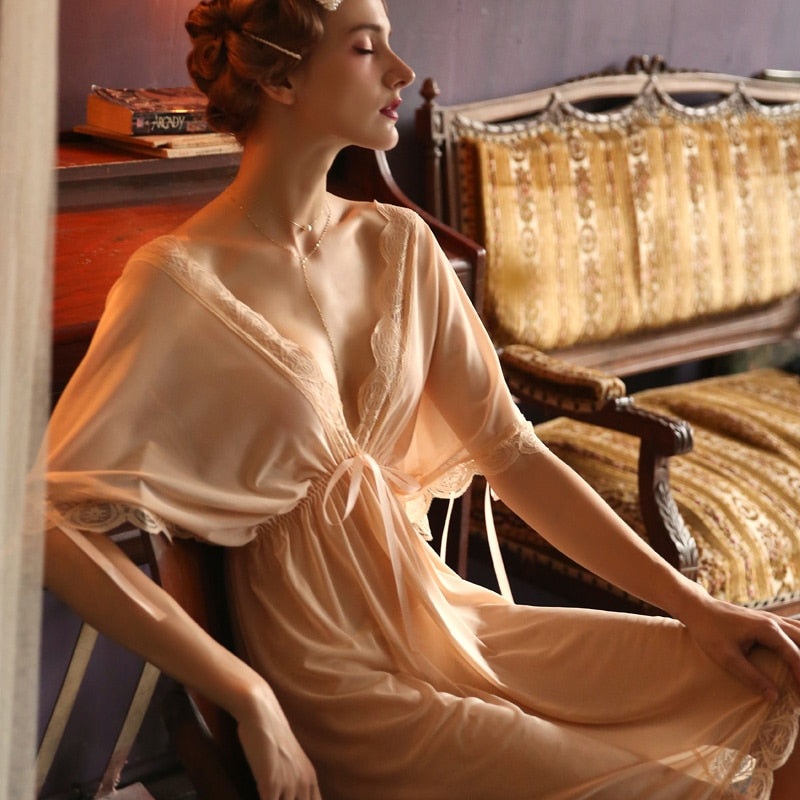 Oversize Ladies Lingerie Deep V Lace Temptation Maid Uniform Mesh Loose Night Dress Nighties Nightgown Summer Women Sleepwear