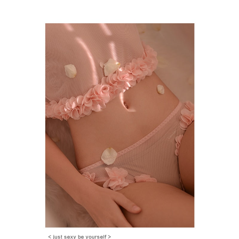 Pajamas for Women French Sleepwear Sling Transparent Sweet Round Neck Lace Flower Pajamas Suit Underwear Set Sexy Lingerie