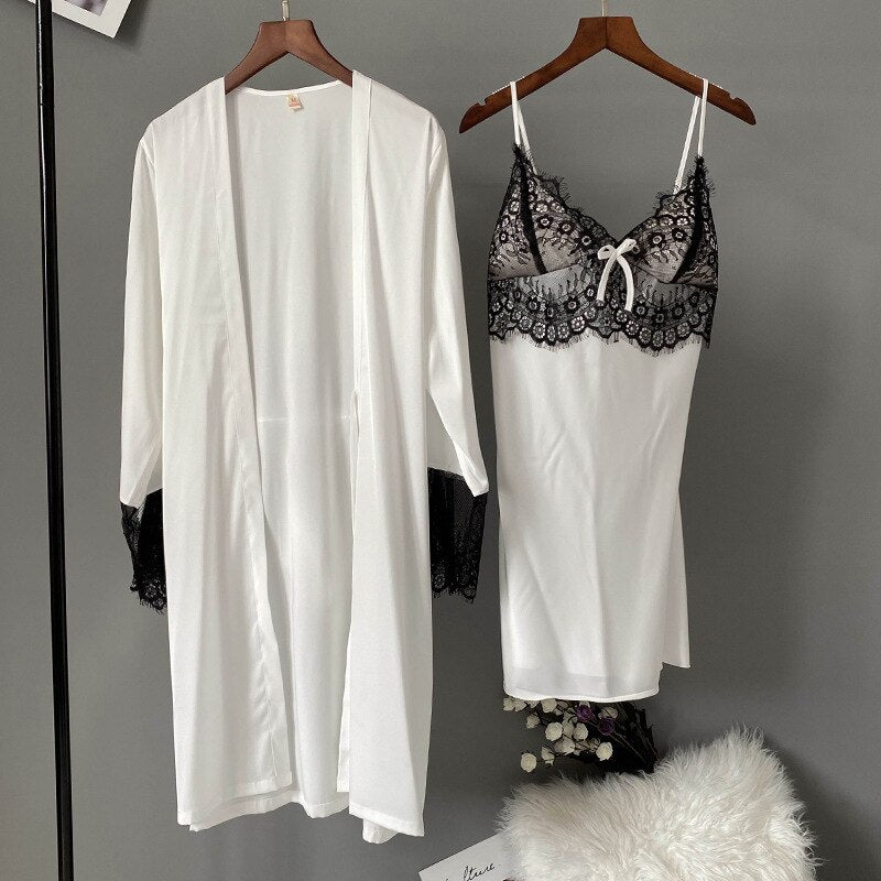 Sexy Lace Bathrobe Nighties Dress Sleepwear Decoration: lace Collar : V collar Sleeve : Spaghetti Strap