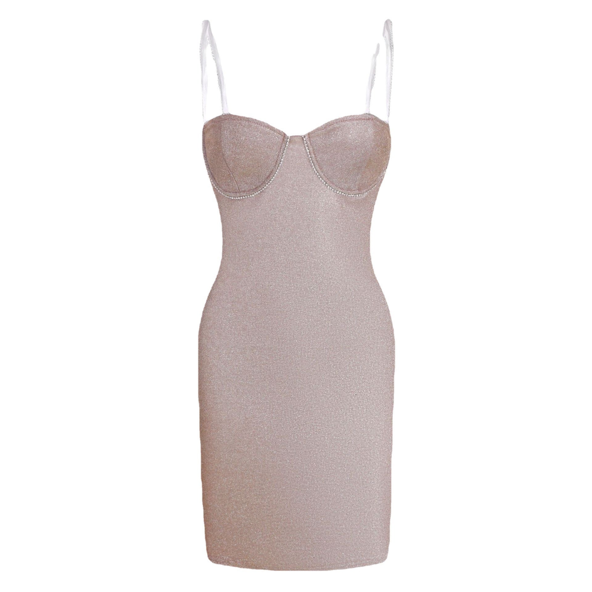 Sexy Bright Silk Diamond Mini Women New Elegant Princess Dress Low-Neck Sleeveless Backless Night Club Party Bodycon Dress